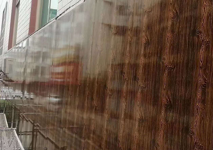 招牌采用紋理逼真的木紋底板,材質(zhì)為金屬扣板。