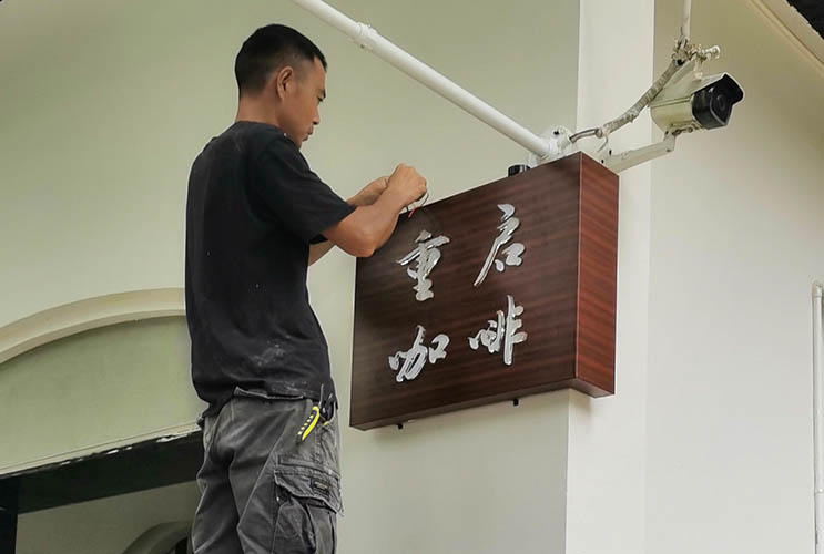 作為咖啡店鋪的招牌設(shè)計制作,可以采用長沙鏤空燈箱定制